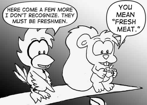 September 17, 2008 (published) / May 17, 2012 (posted here)So starts our squirrel and cardinal's second school year. I wonder what they did all summer with no students to torment.
